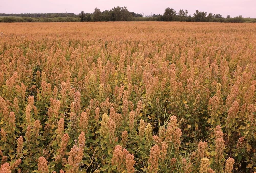 Quinoa requires full sun with light shade in extreme heat and grows best in fertile, well-drained soil with a pH of 6.0–7.5.